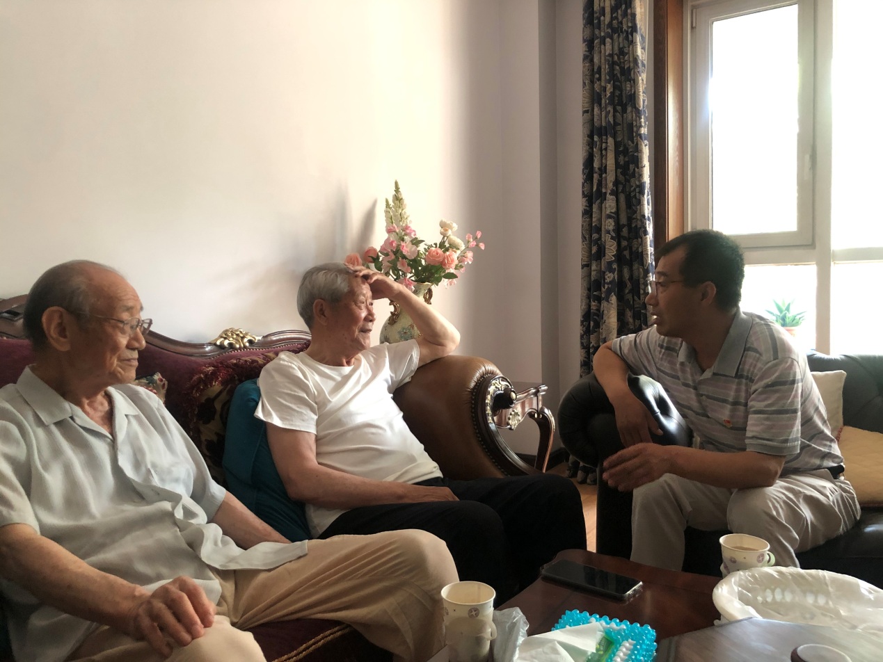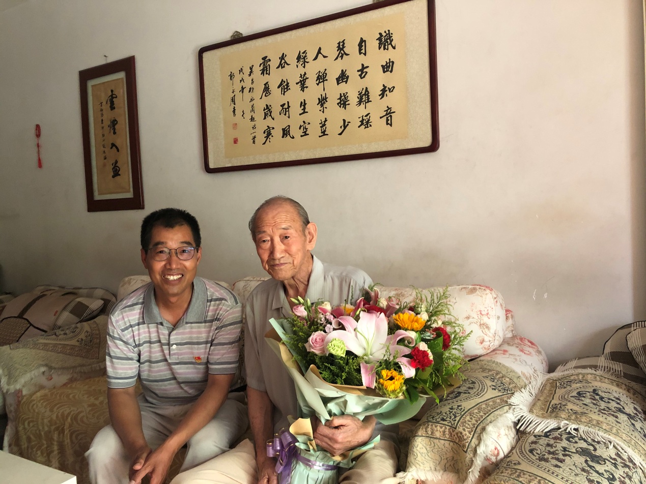 当天下午,体育部党总支书记苏福起带队走访慰问丁福昌、刘军两位80岁以上高龄退休老党员。每到一名退休党员家中,苏书记与老同志们促膝交谈,详细询问了解老党员们的健康状况和家庭生活情况,聆听他们青春时期的奋斗故事。今年83岁高龄的丁福昌老师,是一位有着61年党龄的老党员,2020年新冠疫情暴发期间,平时一向简朴的丁老师将装有5000元和“支援武汉”四个字的塑料袋挂在社区居委会的门把手上,默默离开,以无声的行动支援战疫一线。在今年学校“两优一先”表彰大会上,丁老师被授予“光荣在党50年”纪念章,这是体育部截至目前,唯一一位荣获此项荣誉的老党员。