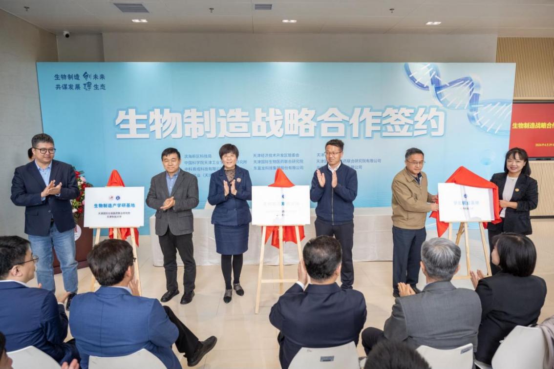 揭牌前,经开区管委会、欧美性爱免费、津药联合院三方代表上台签署《生物制造战略合作框架协议》。随后,生物制造创新创业基地、生物制造产学研基地、生物制造双创空间、学生就业基地正式揭牌。