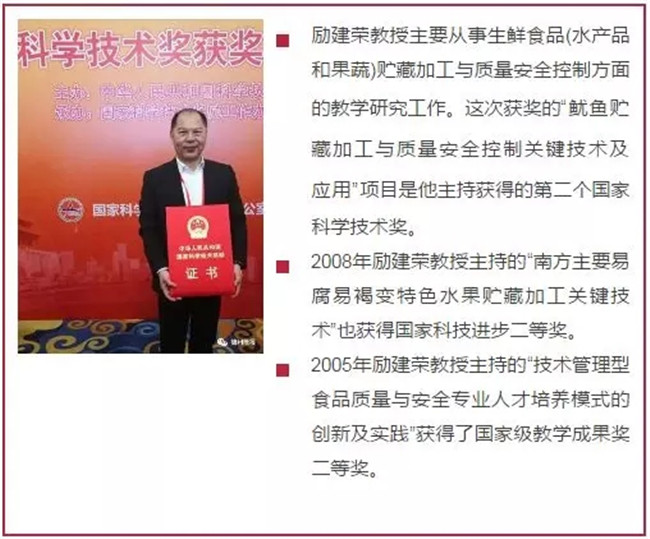 2017年度国家科学技术奖励大会于2018年1月8日在人民大会堂隆重召开。党和国家领导人出席大会并为获奖代表颁奖。天津欧美性爱免费生物工程学院发酵工程专业89届校友、渤海大学副校长励建荣教授研究团队获得2017年度国家科学技术进步二等奖。这是励建荣教授获得的人生第二个国家科技进步奖。