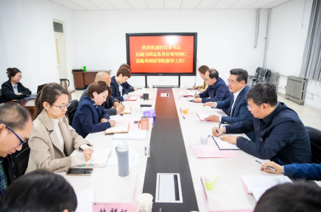 白海力认真听取学院工作汇报,全面了解外国语学院发展建设情况。他对学院近年来立足文科建设,在人才培养、科研创新等方面取得的成绩给予充分肯定,同时提出工作要求。