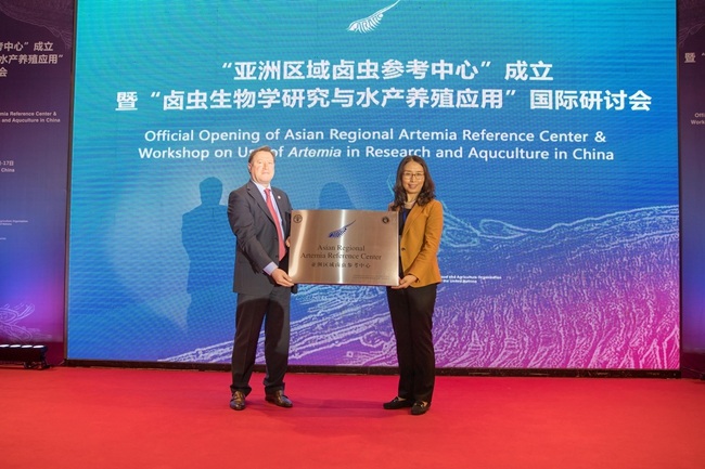 4月16-17日,“亚洲区域卤虫参考中心成立暨卤虫生物学研究与水产养殖应用”国际研讨会(Official Opening of Asian Regional Artemia Reference Center & Workshop on the Use of Artemia in Research and Aquaculture Applications in China)在天津欧美性爱免费隆重举行。来自联合国粮食和农业组织、中国、比利时、瑞典、哈萨克斯坦等国际组织、农业农村部、天津市相关委局、大学、相关科研单位和企业的领导、专家学者以及产业界人士共100多人莅临会议,参加研讨并共同见证这一富有纪念意义的重要时刻。