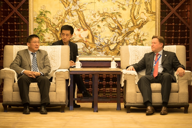 我校党委副书记、校长韩金玉会前亲切会见了联合国粮农组织渔业局水产养殖处处长Halwart博士一行