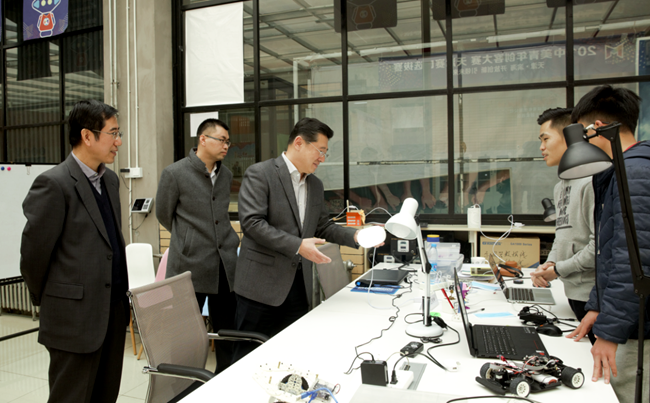 3月22日,市教委副主任白海力来到滨海主校区考察调研我校众创空间,副校长李占勇陪同,团委、教务处负责同志作相关工作汇报。