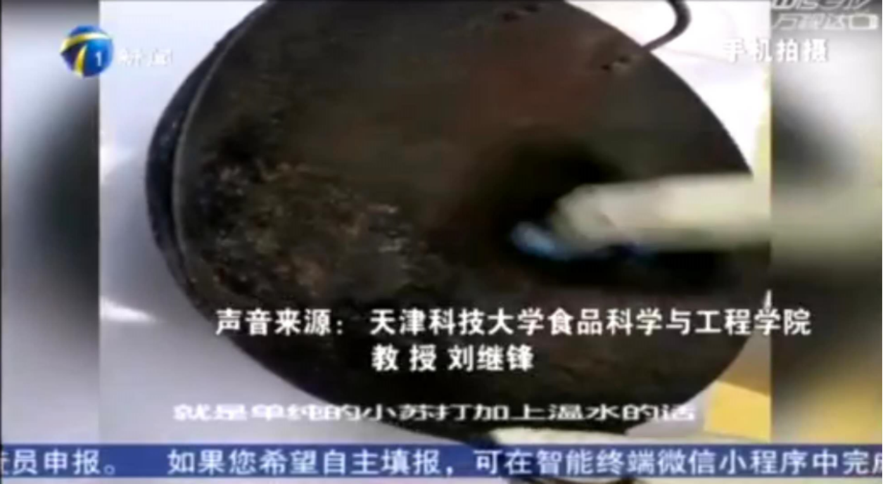近日,天津电视台《新闻最正点》栏目邀请我校食品科学与工程学院刘继锋教授进行线上演示。刘教授首先展示了四组实验,分别是小苏打加温水去油污、小苏打加温水去铁锈、小苏打加醋去油污、小苏打加醋去铁锈,实验发现只有第一组实验:小苏打加温水去油污有明显效果。针对这一现象,刘教授解释说:“小苏打是一个碱性的物质,醋是一个酸性的物质。混合以后就会发生酸碱中和反应,实际上就降低小苏打去除油污的效果。”随后刘教授又单独用白醋去除铁锈,发现效果明显。所以结论是去油污单独用小苏打,去铁锈单独用醋。