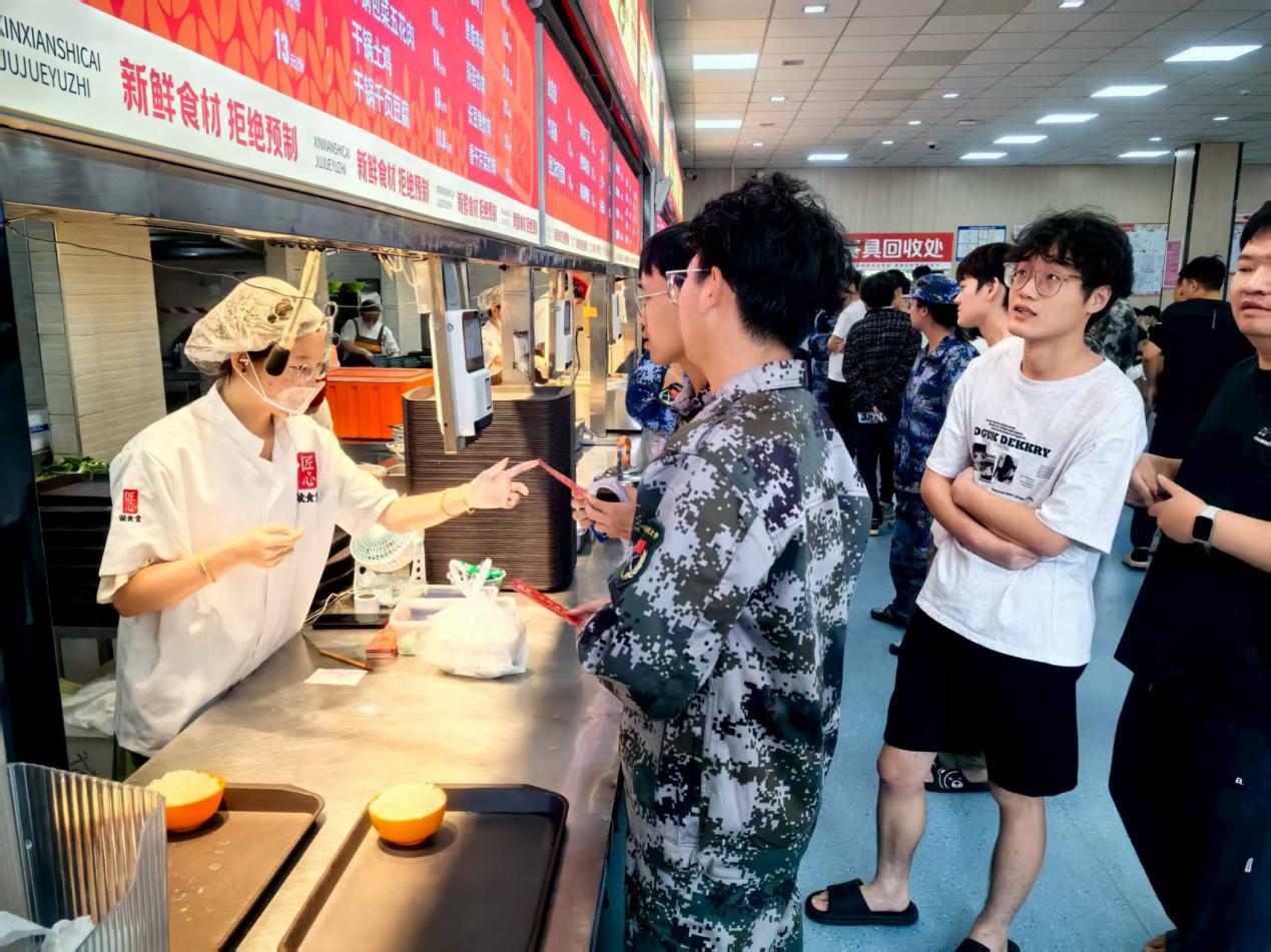 中午时分,食堂内人头攒动,气氛热烈。同学们有序排队领取餐食,脸上洋溢着喜悦的笑容。众多校友也重回食堂,凭学校准备的餐券体验校园餐饮,重温青春岁月的美好记忆。大家纷纷表示,“登科团圆饭”不仅是一餐饭,更是一份来自学校的深情厚谊,增强了师生和校友对学校的归属感和自豪感。