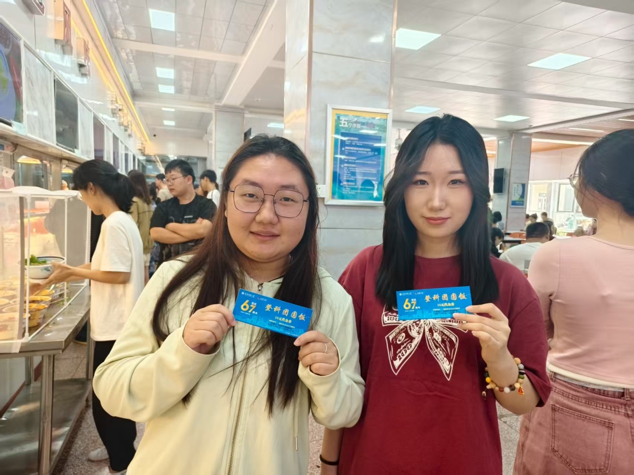 活动当天,学校为在校学生发放了“登科团圆饭”专属15元代金券。同学们可凭券在所在校区食堂消费使用,自由选择心仪餐品。各食堂提前筹备,精心设计了多种营养均衡、口味丰富的餐品,营造出浓厚的校庆氛围和育人环境,让学生在享受美食的同时感受校园文化的熏陶。