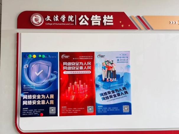 各单位、各学院通过部门网站、电子显示屏、宣传海报宣传册、融媒体推送新闻等方式,大力营造校园“网络安全宣传周”活动的良好氛围,提高师生网络安全意识,号召师生做网络安全的忠实倡导者和积极维护者,让依法上网、科学上网、安全上网蔚然成风。