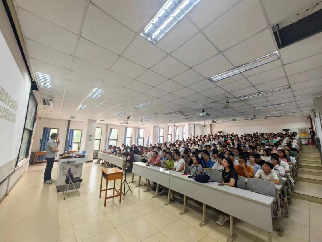 网络安全和信息化办公室党支部党员陈磊通过生动形象的讲解和实例展示,向同学们介绍了目前校园网络安全形势,如何安全用网、如何防范网络诈骗以及提升网络安全手段等方面的知识。网络安全和信息化办公室党支部党员陈颖通过分享发生在身边的实际案例,向到场的同学们讲解了如何面对网络诈骗,网络暴力等现象,引导同学们遵守网络法治、网络道德,勇敢向不良网络行为说不,向隐蔽的键盘侠“宣战”,共享网络文明,争做文明上网人。
