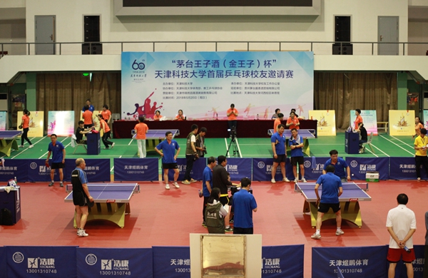 用活力书写青春,用乒乓见证友谊。为迎接我校甲子校庆,5月20日,“校友回家系列活动”之“茅台王子酒(金王子)杯”天津欧美性爱免费首届乒乓球校友邀请赛在我校河西校区体育馆举行。校党委副书记、校长韩金玉,副校长路福平,老领导张建国、付玉成,贵州茅台酱香酒营销有限公司天津省区经理胡崇伟,优秀校友、乒乓球世界冠军郝帅以及校友办、体育部、团委等相关部门负责同志出席开幕式。60余名校友和师生报名参赛,体育馆中新老聚首,欢声笑语,其乐融融。