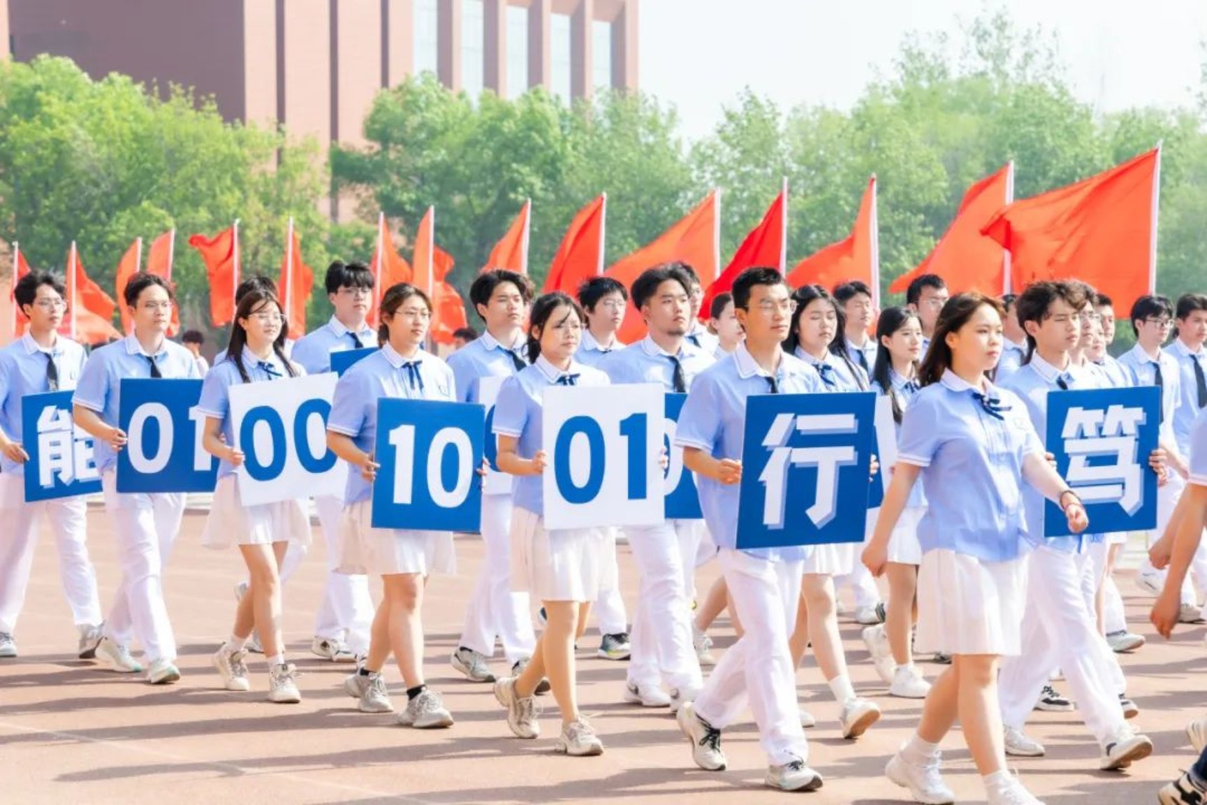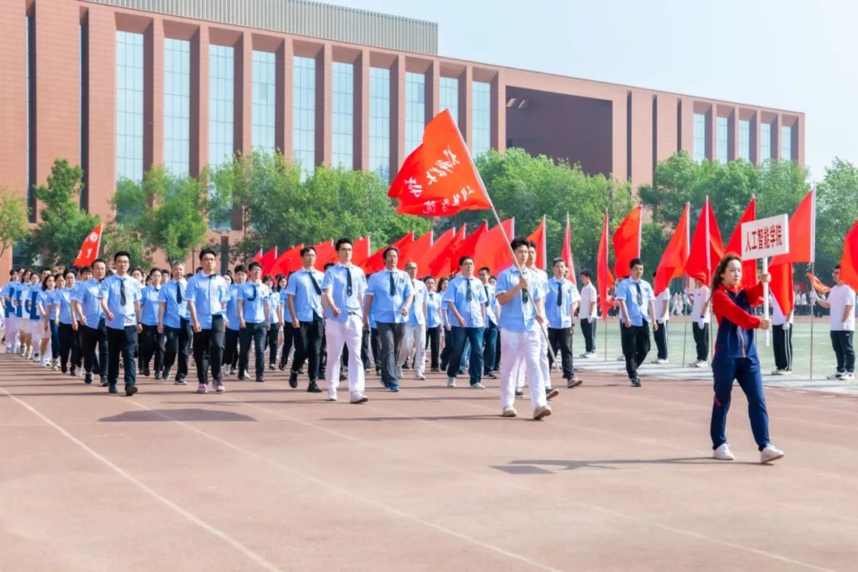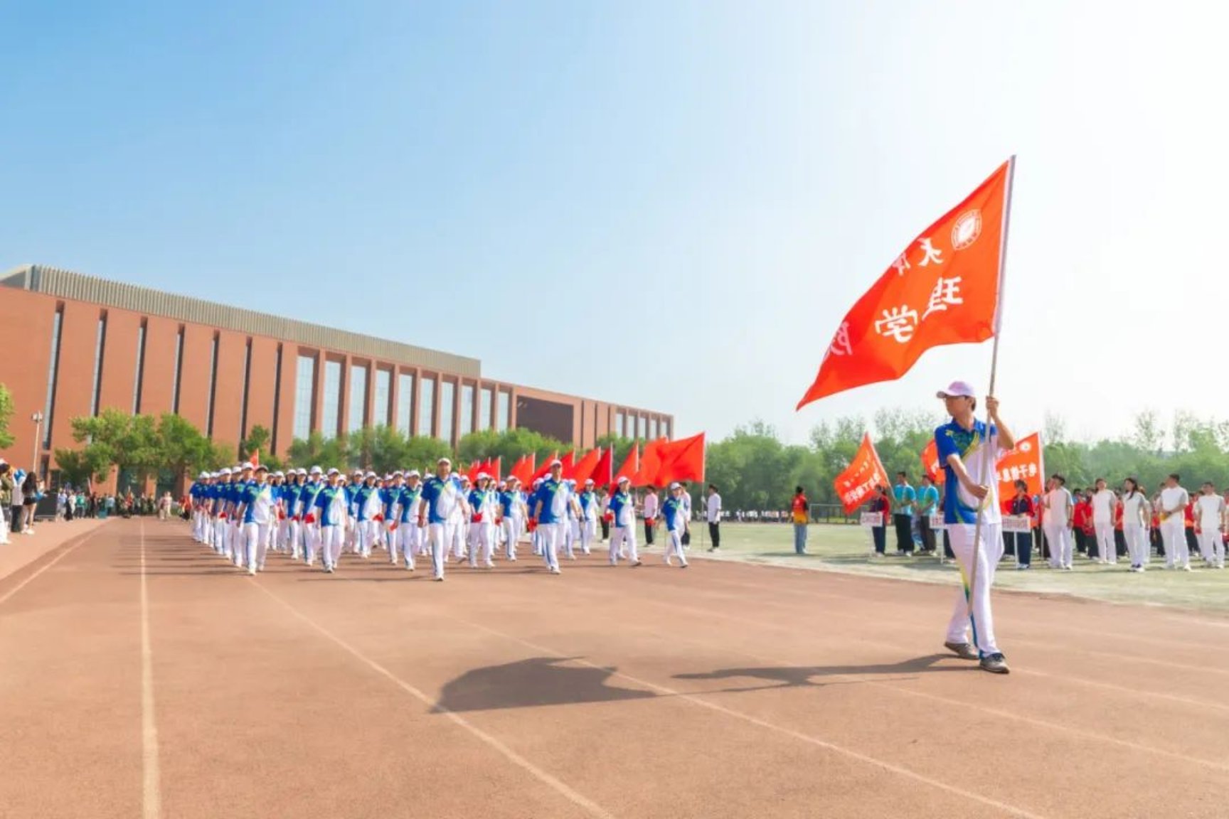 伴随着激昂的乐声,校旗方队、旗海方队、各参赛方队踏着整齐的步伐依次入场。他们口号响亮、斗志昂扬。