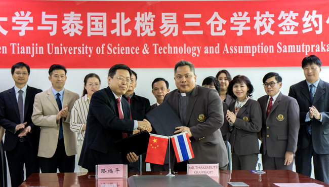 泰国北榄易三仓学校方董事长MR.THAKSABUTRKRAIPRASIT表示,很高兴能够与天津科大签署合作协议。此次合作有助于更好地学习借鉴中国办学经验,推动双方开展招生与师生互访等交流合作。