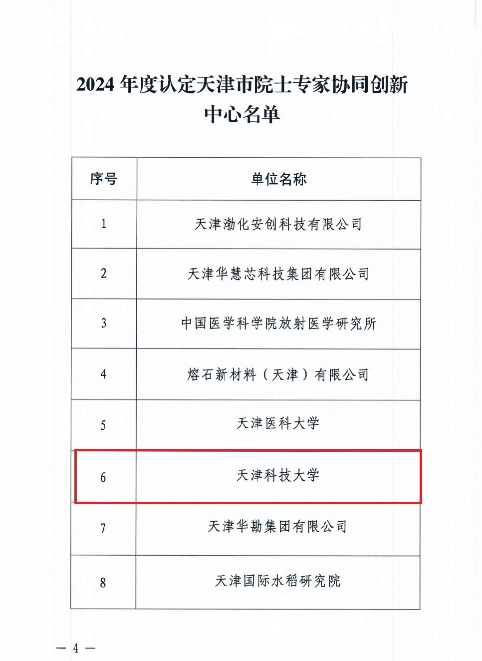 近日,天津市科学技术协会发布2024年度天津市院士工作站、院士专家协同创新中心认定名单,我校“未来食品精准智造”院士专家协同创新中心获批认定,为我校首家天津市院士专家协同创新中心。