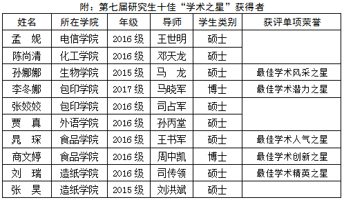 附:第七届研究生十佳“学术之星”获得者