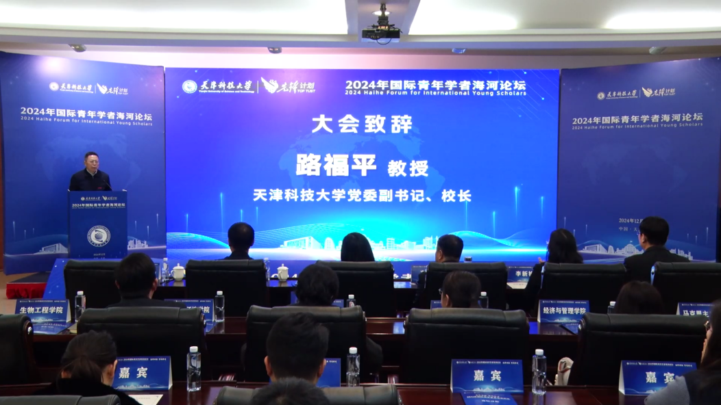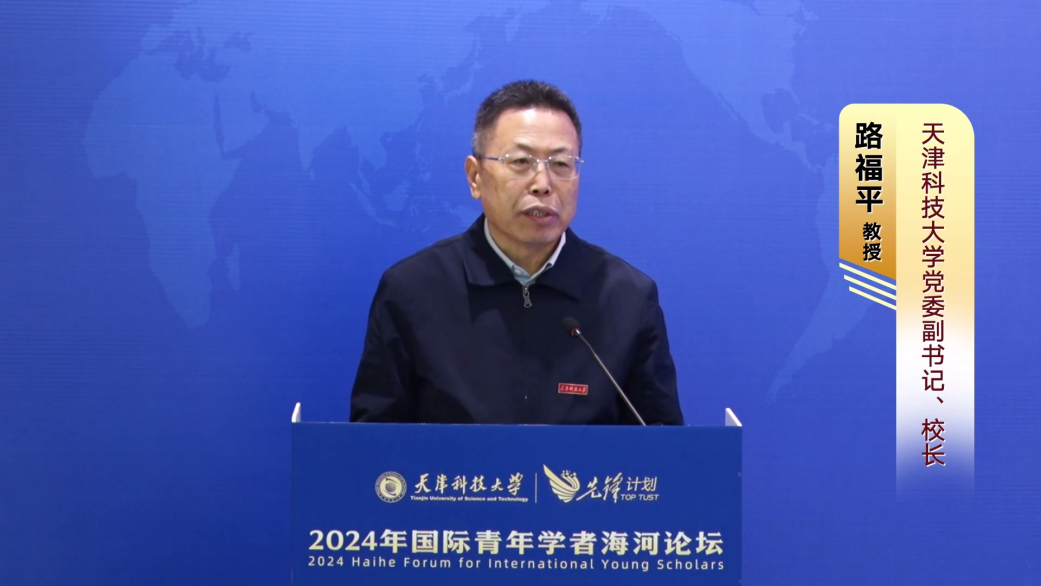 路福平在致辞中代表学校对参加论坛的各位人才和嘉宾表示诚挚欢迎,他指出举办国际青年学者海河论坛是学校认真落实习近平总书记关于教育、人才的重要论述和视察天津重要讲话精神的重要举措。学校始终坚持把人才作为强校之基、发展之要、竞争之本,紧盯全方位培养、引进、用好人才的关键环节,坚持“人才强校”共识,贯彻“先锋计划”战略,推进“优师强教”行动。学校深入实施“天科人才计划”,持续优化人才评价机制,构建人才生态,创造良好条件,营造暖心环境。下一步学校将继续加强青年人才培养、支持和使用,不断完善有利于青年人才成长发展的制度环境,激发广大青年人才的创造力和创新活力,特别是要让广大青年人才挑大梁、当主角。同时衷心希望各位青年学者通过此次论坛了解天科大、走进天科大,扎根美丽天津,为推进学校和天津高质量发展献智出力,为实现中华民族伟大复兴的中国梦砥砺前行。