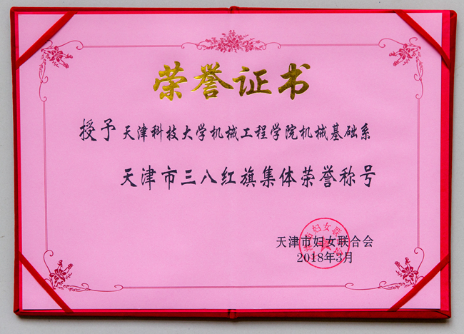 日前,天津市妇女联合会正式发文表彰2017年度天津市三八红旗手标兵、三八红旗手(集体)。我校食品学院刘亚青荣获“2017年度天津市三八红旗手”称号,机械工程学院机械基础系获“2017年度天津市三八红旗集体”荣誉称号。