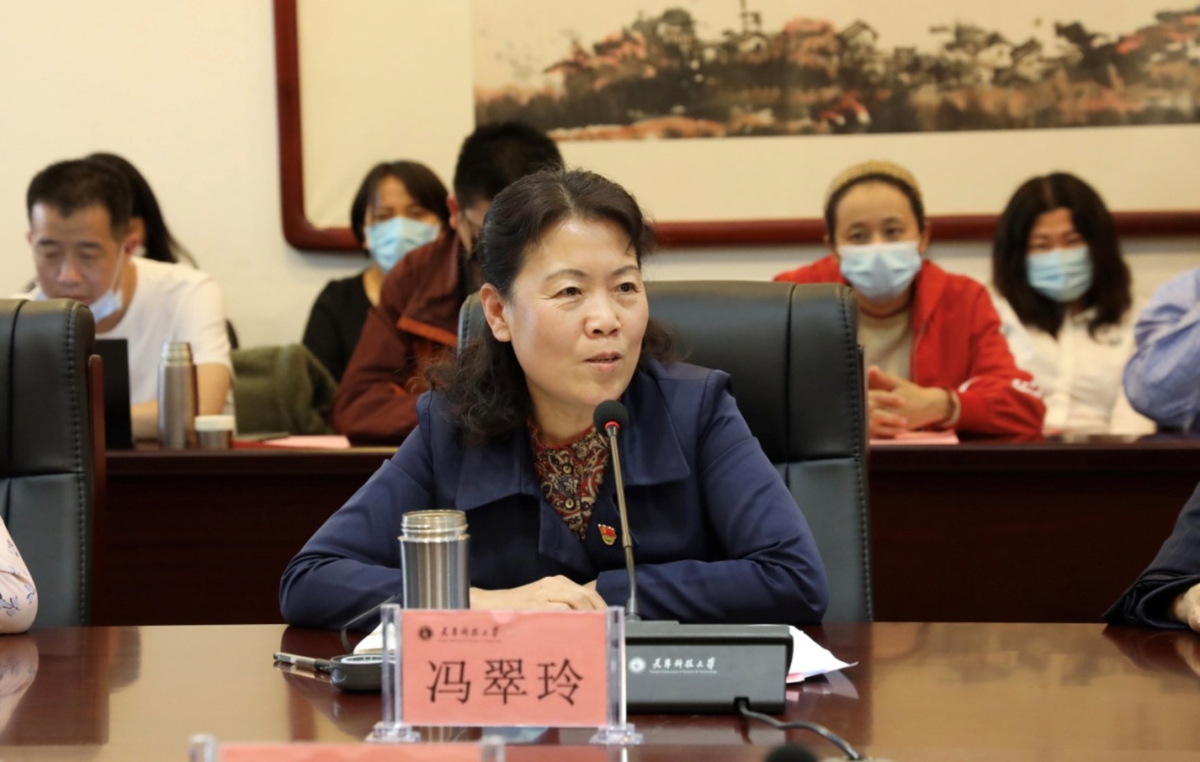 会上,冯翠玲带领大家深入学习了习近平总书记在中国人民大学考察时的重要讲话精神。冯翠玲强调,高校作为人才培养的主力军,我们要深刻认识“为谁培养人、培养什么人、怎样培养人”这个教育的根本问题,坚持党的领导,坚持马克思主义指导地位,坚守办学初心、牢记办学使命,坚持为党育人、为国育才。要加强学校哲学社会科学队伍建设,充分发挥哲学社会科学育人功能,帮助学生形成正确的世界观、人生观、价值观,提高道德修养和精神境界,养成科学思维习惯,促进身心健康。要把服务国家作为最高追求,把加强党的建设作为坚强保证,努力走出一条构建中国特色哲学社会科学的新路。