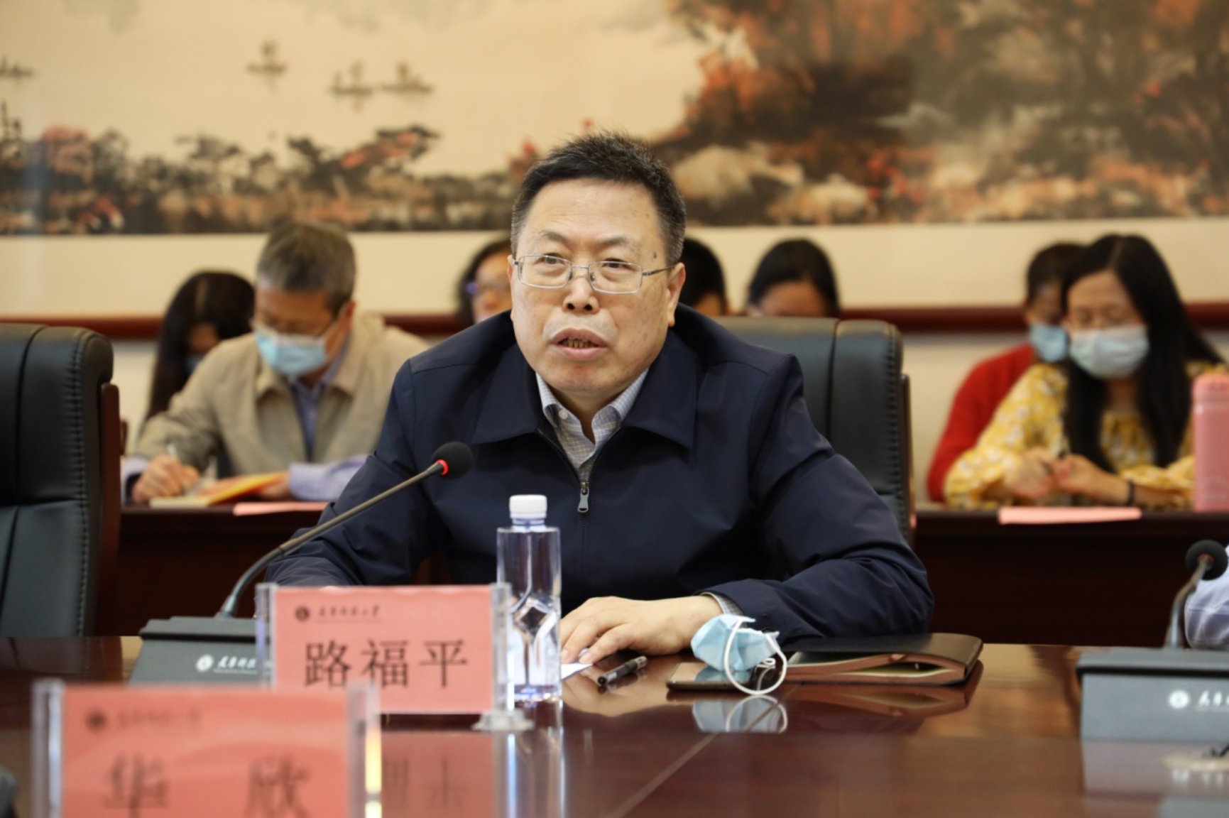 会上,路福平对《国家“十四五”时期哲学社会科学发展规划》出台的背景、主要内容、重点工作做了解读,对学校加快构建中国特色哲学社会科学做了工作部署。路福平强调,要深入学习贯彻习近平总书记在中国人民大学考察时的重要讲话精神,结合学校实际,扎实落实《规划》部署要求,大力推进学校哲学社会科学繁荣发展。一是加快哲学社会科学学科体系建设,以学科交叉为突破点,服务学校整体发展需要。一方面,哲学社会科学学科与自然科学学科要相互借势。另一方面,哲学社会科学要增加自身的科学属性,增强用理性思维、科学思维解决实际问题的能力,在解决实际问题中实现研究价值。二是要以提升学术原创能力为主线,加快哲学社会科学学术体系建设,推动学术成果转化。三是要加快哲学社会科学话语体系建设,发挥哲学社会科学的战略引导和粘合作用。