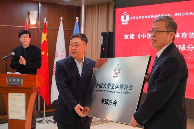 大会宣读了《中国大学生体育协会关于荷球分会换届的决定》,并为我校授牌。国际荷球联合会主席扬﹒弗朗索,亚洲荷球联盟主席黄哲英,国家体育总局社体中心、中国荷球协会(筹)等纷纷发来贺信,对我校连任荷球分会主席单位表示祝贺。