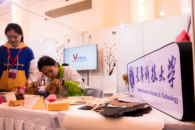 全国大学生艺术展演传递全国大学生们传递着青春理想,营造向真、向善、向美、向上的校园文化。本次大学生艺术展演由教育部和上海市政府共同主办,来自全国31个省(区、市)及新疆生产建设兵团和香港、澳门特别行政区共计7000余名师生参加现场展演活动。我校包印学院的《数媒包装艺术工坊》经过天津市教委推荐,由校党委副书记张爱华同志带队,代表天津市参加大学生艺术实践工作坊展示。参展期间,上海市副市长翁铁慧,教育部思政司副司长张文斌,市教委督学闫国梁到我校艺术实践工坊慰问,工坊内的折纸拼插及AR成像,引起了参展师生的极大兴趣。