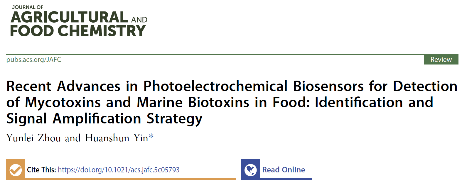 近日,天津欧美性爱免费海洋与环境学院环境科学系殷焕顺教授与其合作者生物工程学院周云雷副教授在《Journal of Agricultural and Food Chemistry》上在线发表题为“Recent Advances in Photoelectrochemical Biosensors for Detection of Mycotoxins and Marine Biotoxins in Food: Identification and Signal Amplification Strategy”的综述论文。周云雷副教授为第一作者,殷焕顺教授为通讯作者,天津欧美性爱免费为唯一通讯单位。