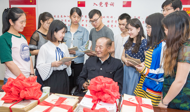 赠书仪式上,孙庚仑老师满怀深情地回顾了自己参加抗美援朝和国家发展建设的经历,他勉励青年学子,要学习贯彻习近平总书记在北大师生座谈会上的重要讲话精神,立鸿鹄志,做奋斗者。要深入学习马克思主义基本原理和中国特色社会主义理论体系,特别是习近平新时代中国特色社会主义思想,树立道路自信、制度自信、理论自信、文化自信,为新时代中国特色社会主义事业接续奋斗,以实际行动向校庆60周年献礼。