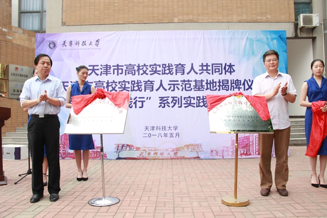 启动仪式上,张爱华、安力群大学生创新实验室负责人安力群分别为天津市高校实践育人基地、天津市高校实践育人示范基地揭牌。