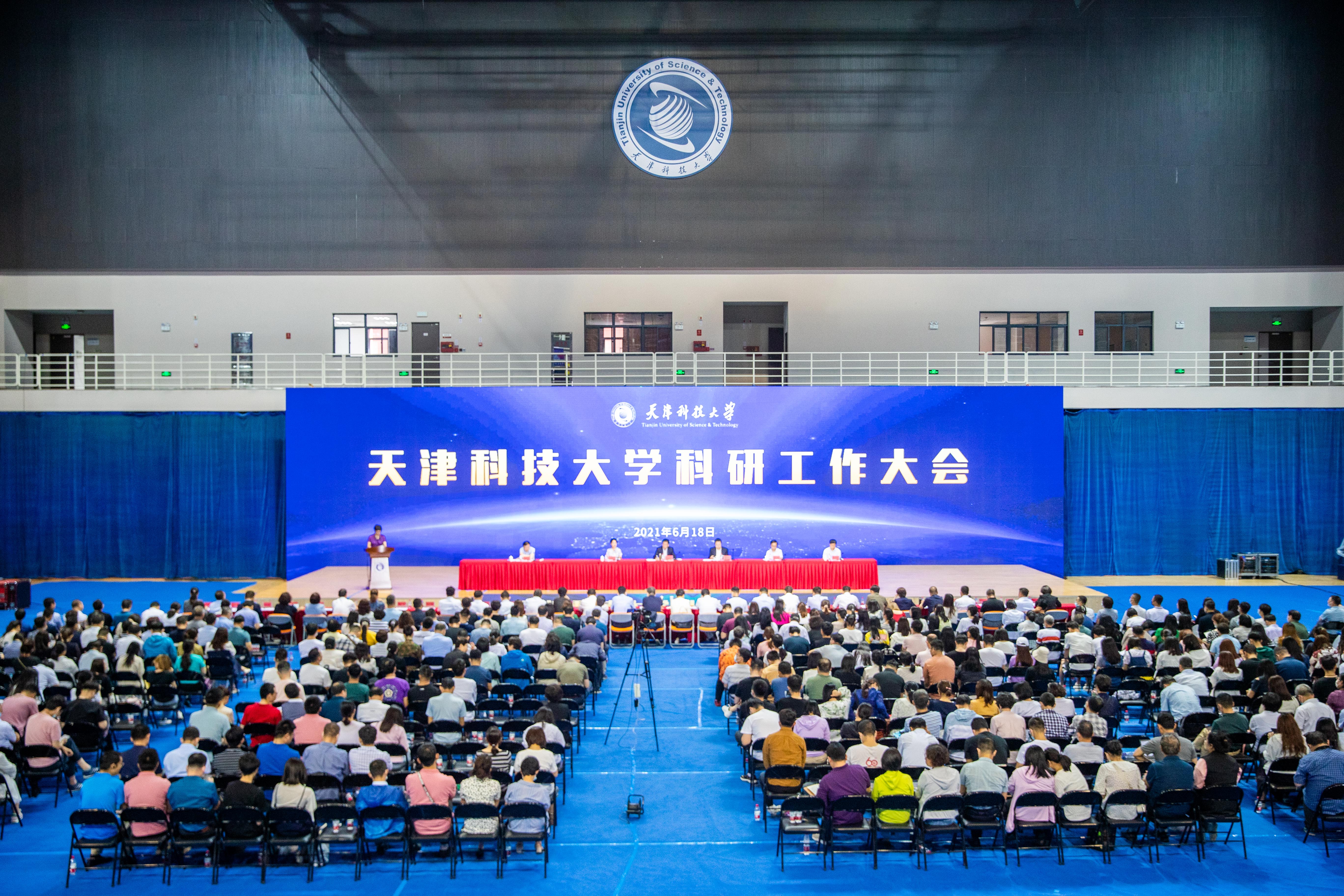 为深入贯彻党的十九大精神和习近平总书记关于科技创新的重要论述精神,落实天津市高校科技创新工作推动会有关要求,总结我校“十三五”期间科研工作成效,部署“十四五”期间科研工作,推动科研工作再上新台阶,2021年6月18日上午,我校在滨海校区体育馆召开科研工作大会。校领导、全体中层干部、各科研平台负责人、学科负责人、学科带头人、各系主任、科研秘书、教师代表以及研究生代表出席大会。会议由校党委常委、副校长程博闻主持。