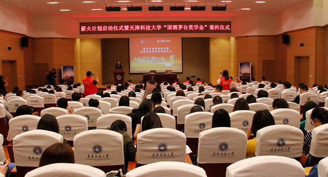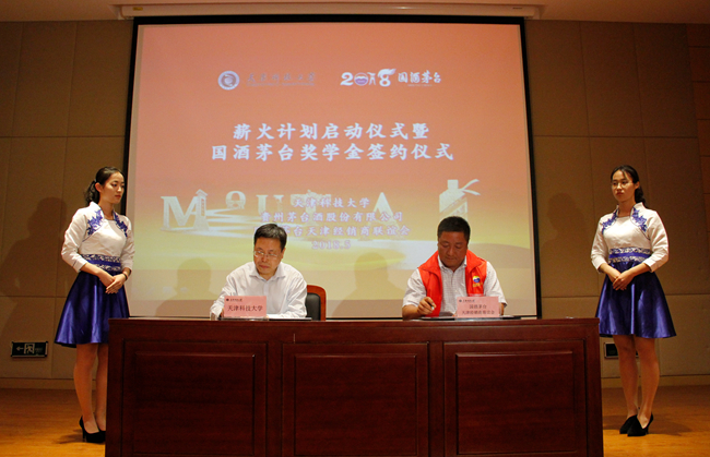 5月10日,茅台集团“薪火计划”启动仪式暨我校“国酒茅台奖学金”签约仪式在滨海主校区逸夫楼报告厅举行。副校长、生物工程学院党委书记路福平,贵州茅台酒股份有限公司天津区经理李波出席仪式并致辞。国酒茅台天津经销商联谊会与我校校友办、学工部、生物工程学院相关负责同志参加。