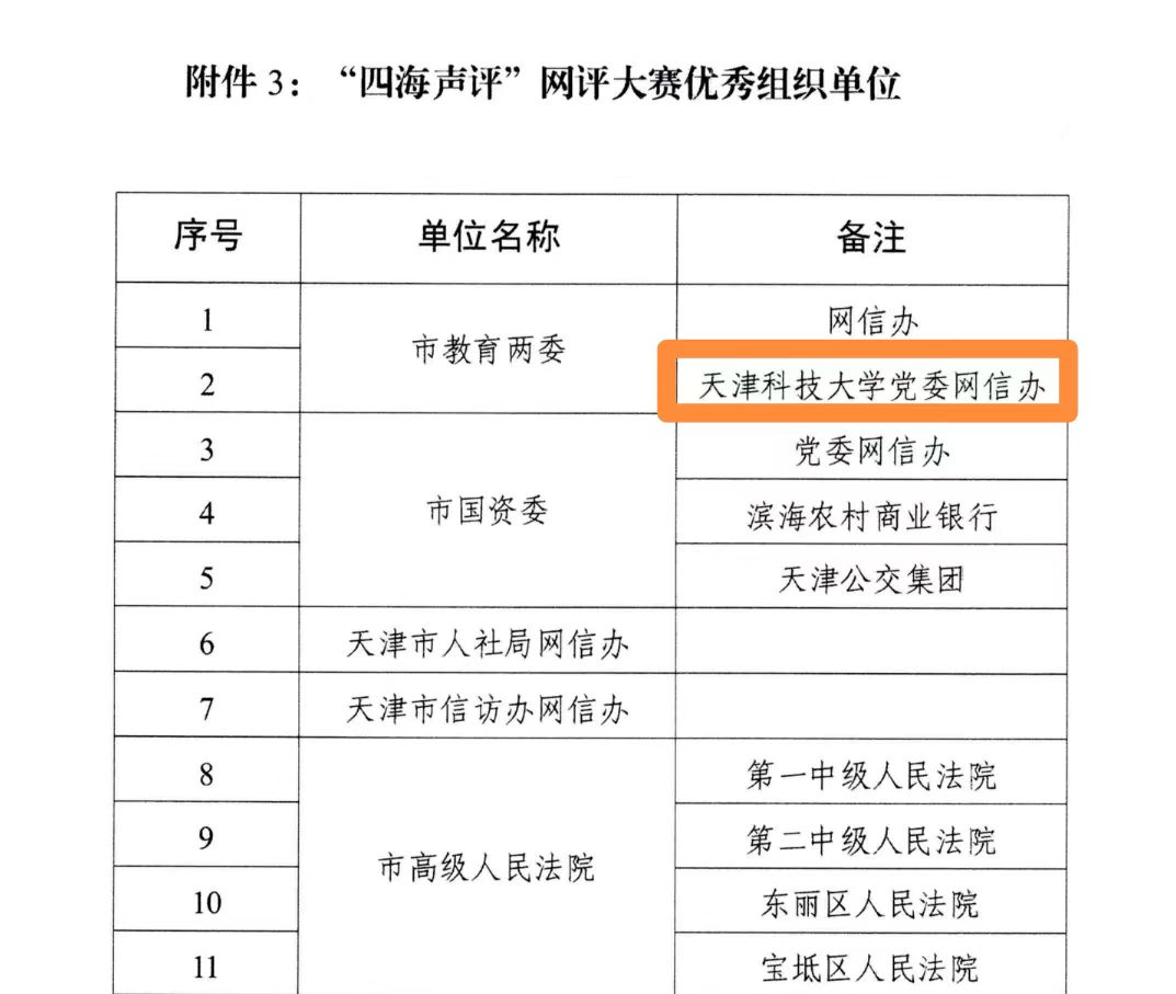 近日,第五届“四海声评”网评大赛结果正式公布,我校网络安全和信息化办公室荣获天津市优秀组织单位荣誉称号,作为全市高校唯一获奖单位受到表彰。“四海声评”网评大赛是由天津市委网信办主办的作为推动中央网信办网评工作“创四优”竞赛活动在津沽大地见行见效的“天津样本”。