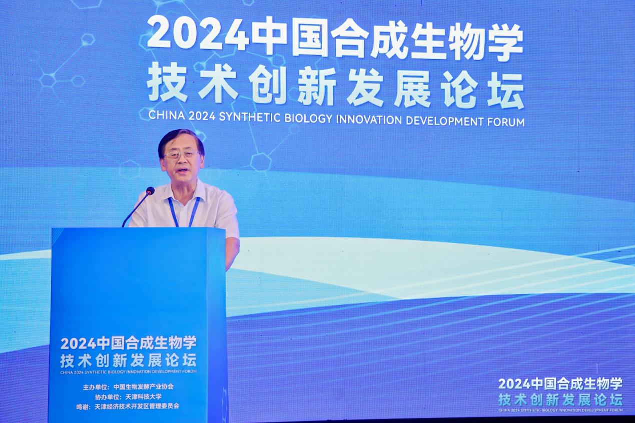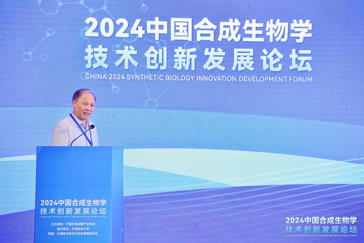 中国生物发酵产业协会理事长于学军发表致辞。他表示,合成生物学作为新质生产力的代表,展现了将基础科学研究转化为实际生产力的巨大潜能,而生物发酵产业也是我国战略性新兴产业,是生物制造的基础产业,是推动生物经济高质量发展、打造经济发展新动能的重要支撑。天津滨海新区高度重视生物发酵产业的发展,在人才、载体、产业链、交通等方面也具有较强的优势,生物发酵产业已经发展成为滨海新区的新质生产力。此次论坛聚焦合成生物学与产业链有效合作,专家学者、行业翘楚汇聚于此,共话友谊,共谋行业发展,意义重大,也必将为滨海新区注入新的发展活力、带来新的发展机遇,推动我国生物发酵行业行稳致远,新质发展。