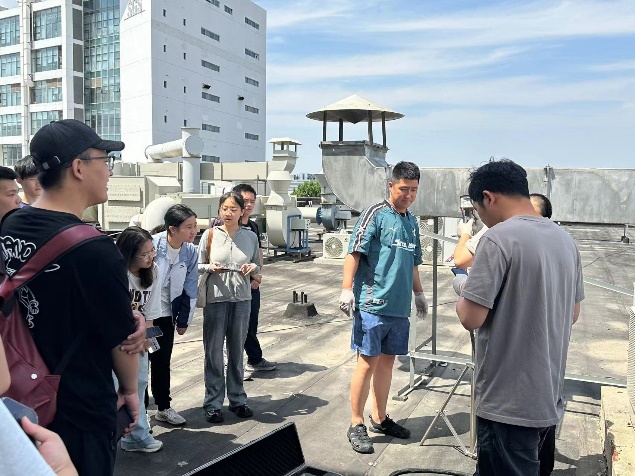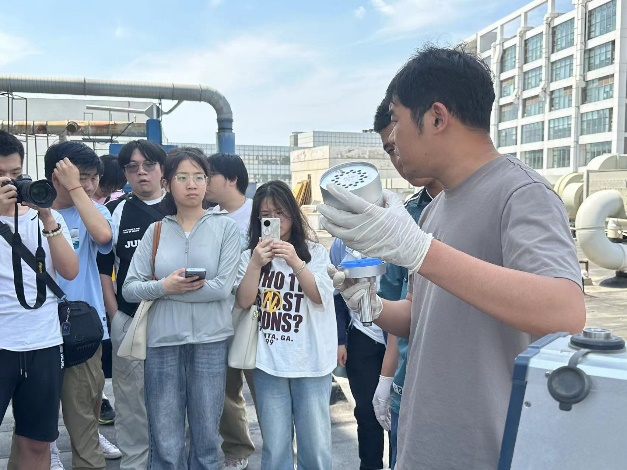 实习第二站,师生们探访了全球领先的检验、鉴定、测试和认证机构——SGS通标标准技术服务有限公司(天津分公司)。本次参访不仅深入其现代化实验室,而且实地考察了环境大气监测的“前线”——室外采样装置。