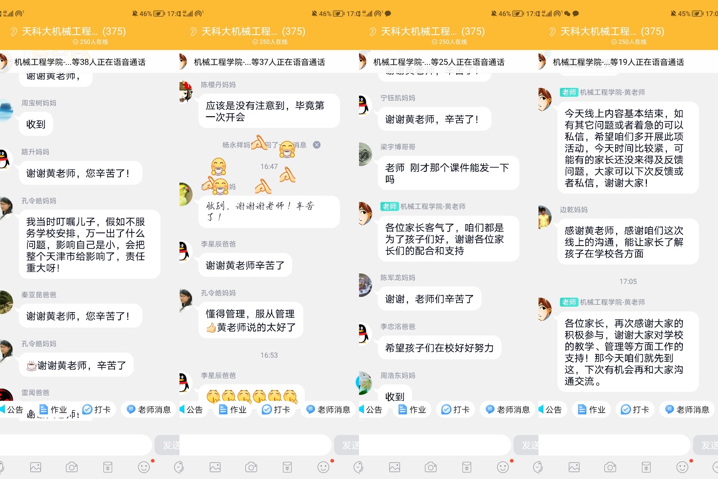 此次活动搭建起家校的桥梁,在心理、学习、生活、疫情防控和思想方面与家长进行了多方面交流。机械工程学院“戮力同心,奋楫笃行”家校联合心理健康教育圆满落幕,大家都纷纷表示,在接下来的疫情防控期间,家校同线同心同行,会更加关注学生的心理健康并且进行更多有效的沟通交流。