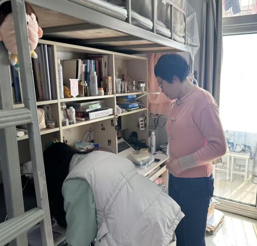 大扫除期间,机械工程学院的辅导员老师们走访了学生宿舍。刘莹老师在检查宿舍卫生时,特别叮嘱同学们要守住安全底线,同时确保卫生达标。辅导员老师们对宿舍安全与卫生的全方位关注,为同学们营造了安心舒适的居住环境,充分体现了机械工程学院对同学们的关心与呵护。