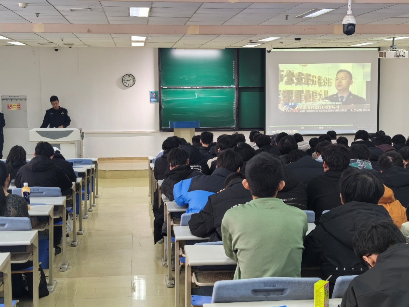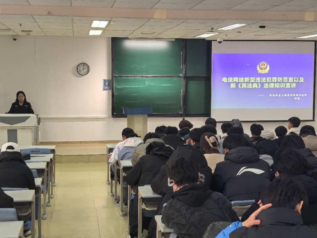 为进一步提升学生守法意识、安全防范意识和自我保护能力,促进学生健康成长,营造和谐、健康、守法、文明的校园环境,3月6日,天津经开区管委会党委办(政法办)和滨海分局组织警力深入学院,开展校园安全主题教育,学院2024级本科生共200余人参加宣讲会,会议由2024级本科生辅导员曹阳主持。