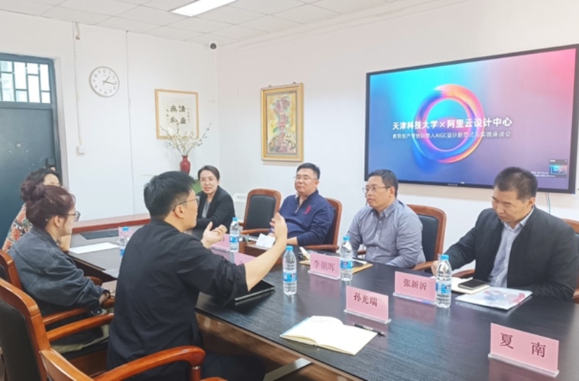 活动期间,阿里云设计中心PaaS负责人杨涛和高校校企合作负责人胡峻与艺术设计学院领导和相关学科专业负责人、课程负责人进行了深入交流。双方介绍了学院的学科建设、科研团队和专业发展特色,以及阿里云参与推动的教育部产学协同设计项目的基本情况以及阿里云设计中心在AIGC领域特别是设计融合的经验和案例。双方表示,希望未来能够有针对性地结合天津市产业集群和艺术设计学院的专业特色,在教学和科研等方面提供支持和合作,共同推进产教融合,培养更多符合行业需求的创新型人才。同时,学院也希望和阿里云共同筹划、申报高质量科研项目,开展学科交叉研究,推动人工智能技术与设计艺术教育的深度融合。