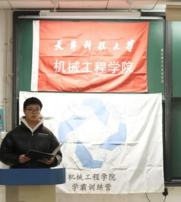 随后,学生会主席杨哲同学宣读了优秀营员的获奖名单,并向这些脱颖而出的同学致以热烈的祝贺。紧接着,优秀营员代表宋玉同学上台分享了他的心得感悟。他诚挚地感谢机械工程学院搭建的优质学习平台,让他在学霸训练营中收获了课本之外的丰富知识,掌握了解决问题的有效方法。同时,他还着重感谢了学长学姐们的悉心教导与无私帮助。最后,宋玉同学表示,面对未来的困难与挑战,定会不断磨砺自我,以实际行动为学院增光添彩。随后,机械工程学院团委副书记王露老师为优秀营员代表颁发证书,这份证书不仅是一份荣耀的象征,更是对他们辛勤付出与不懈努力的高度认可和肯定。