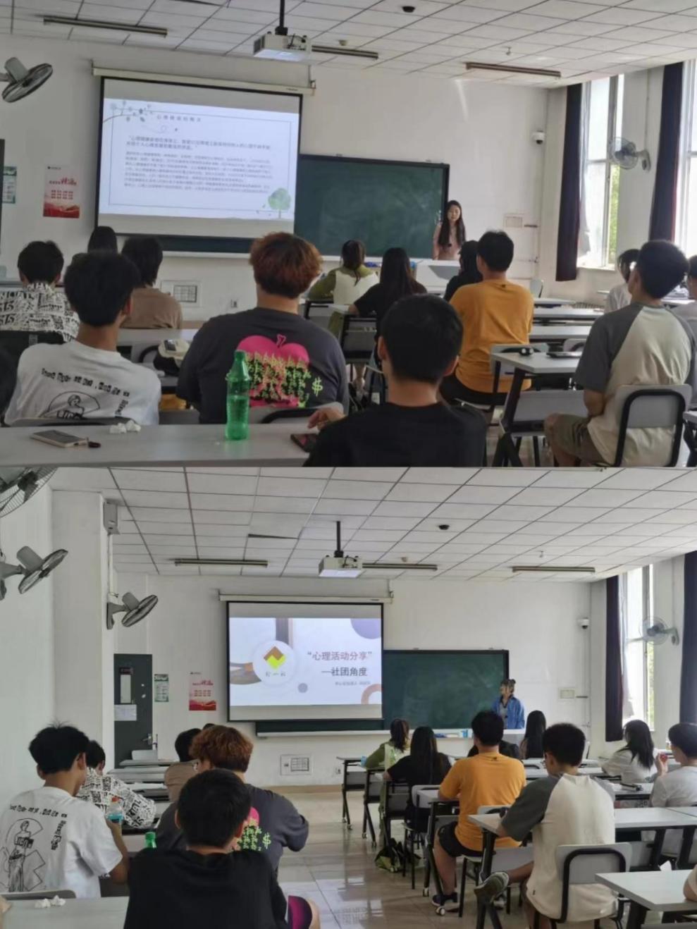她提到,聆心社非常重视心理委员的培训工作,分阶段、有针对性组织开展心理健康知识介绍、新生入学适应、未来生涯规划、朋辈辅导、素质拓展等主题活动,此外,通过迎新志愿活动、助力“双减”小课堂、服务社区开展心理健康宣传教育等丰富多彩的志愿服务实践体验,在帮助他人的同时,大家也感悟到奉献和给予带来的精神愉悦。为丰富广大学生的校园文化生活、促进学生之间的沟通交流、营造良好的心理健康氛围,聆心社曾组织开展手工制作比赛、心理剧表演等活动。