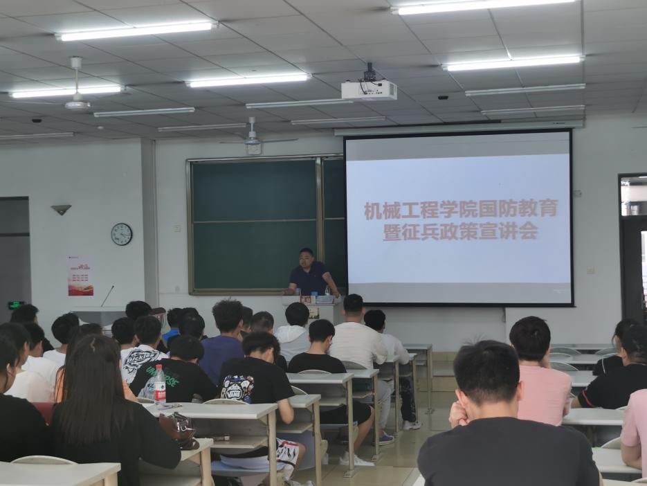 为了弘扬爱国主义精神,普及国防教育,鼓励同学们积极报名参军入伍,提高我院广大青年学子对国防教育和参军入伍政策的认识了解,机械工程学院于2021年5月25日在主楼A210召开国防教育暨征兵政策宣讲会议。
