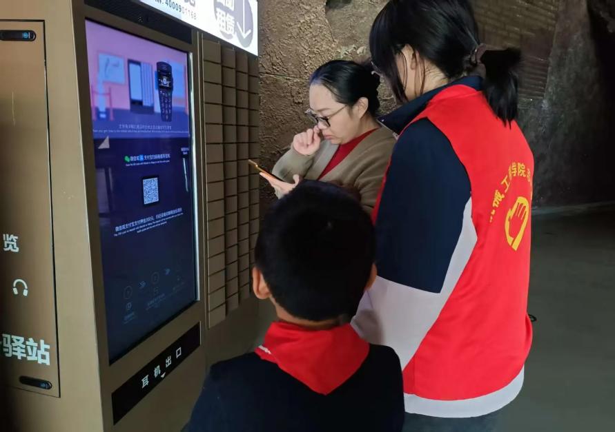 在博物馆入口处,志愿者们负责检票工作的同时,也帮助一些行动不便的老人,使他们得到最基本的安全保障。他们用自己的行动把好有关安全的每一道关,尽显志愿者们的责任感与担当精神。