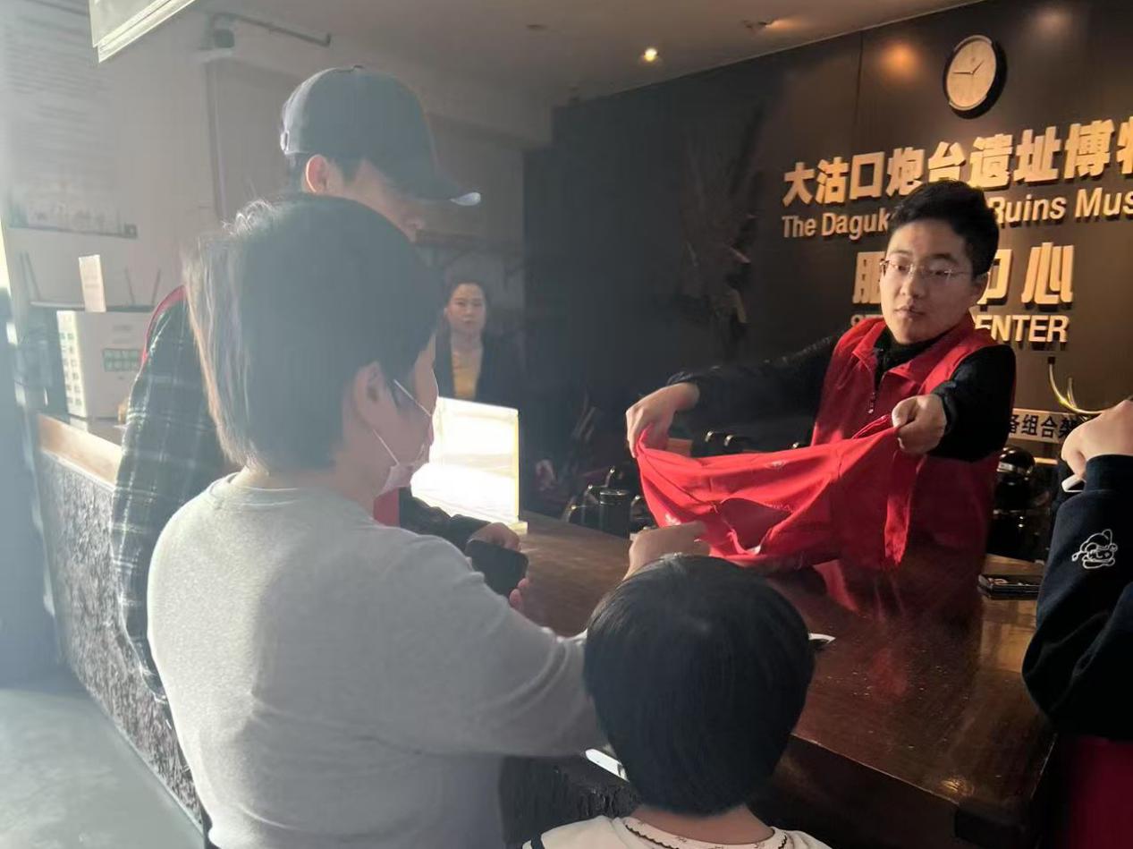 博物馆入场处,志愿者们承担起检票、答疑、引导入场的工作。他们面带微笑,眼神专注而温和。当有参观者到来时,他们会立刻起身,主动上前迎接,用热情的话语询问对方的需求。通过志愿者们的帮助,博物馆的入场工作顺利进行,他们用自身的行动,向人们展现出志愿者们的奉献精神。