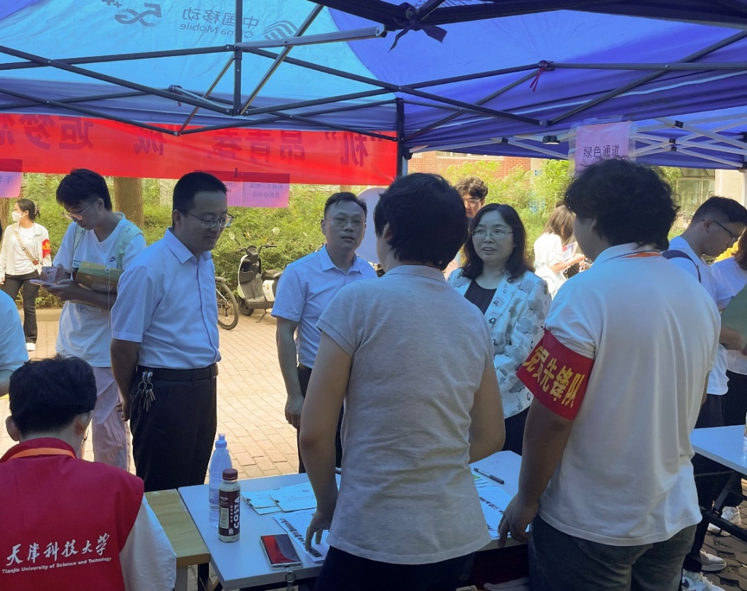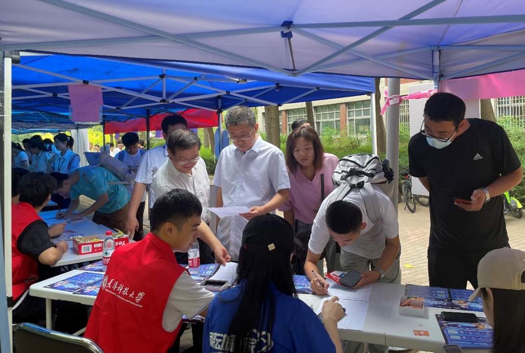 学院党委书记魏连江、院长李文辉一行来到迎新现场,看望前来报到的新生,指导迎新工作,慰问奋战在迎新一线的师生。在学院迎新点,领导们详细了解新生报到流程、志愿服务工作进展情况、学生报到情况等,并与新生和家长亲切交流,耐心解答问题。