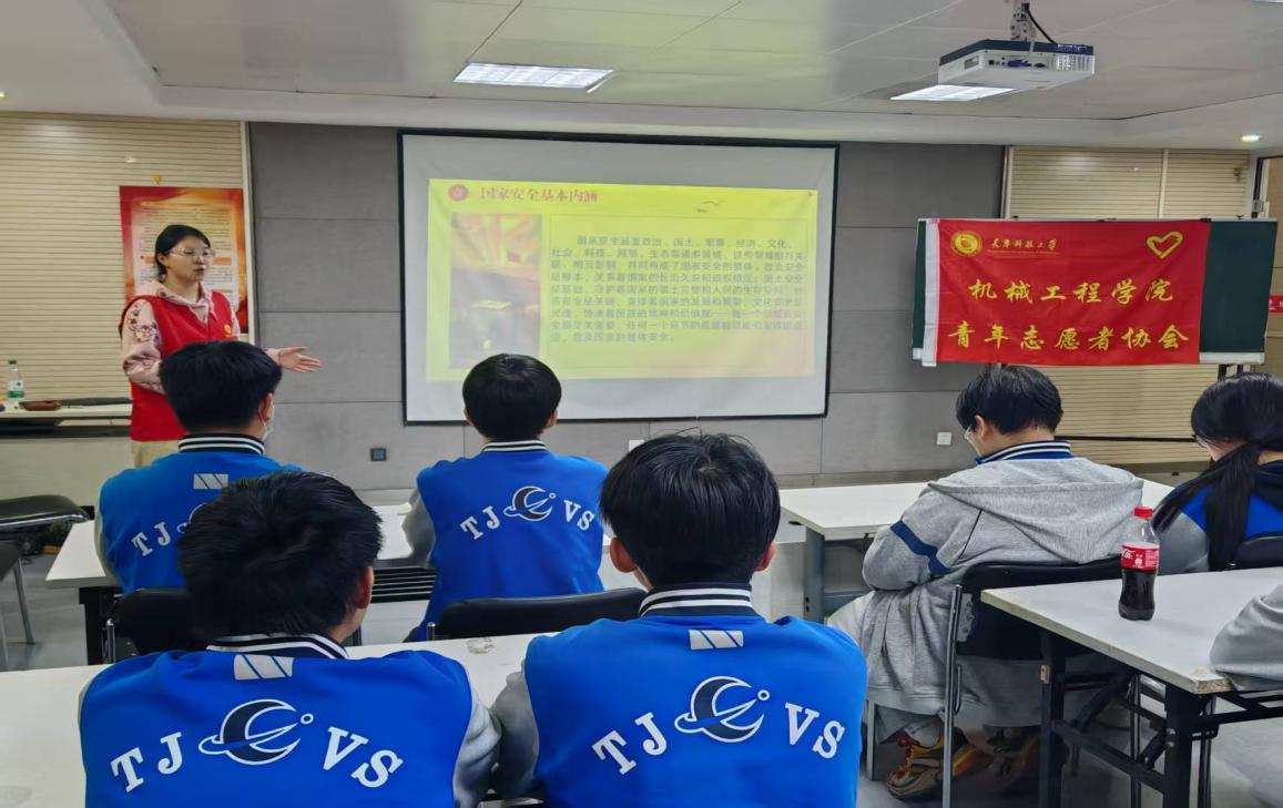 在景兴西里社区的宣讲课堂上,机械工程学院青年志愿者协会以“国家安全,青春挺膺”为主题,用青年视角解构总体国家安全观,让抽象的国安知识如齿轮般精准咬合生活实际,在听众心中转动起守护家国的“红色引擎”。
