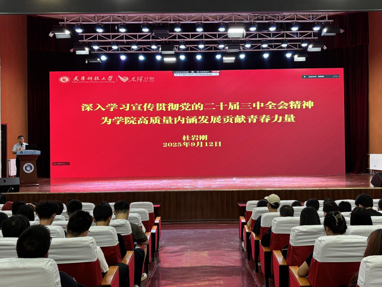 近日,生物工程学院于滨海校区千人礼堂举行“深入学习宣传贯彻党的二十届三中全会精神,为学院高质量内涵发展贡献青春力量”教育大会,大会由生物工程学院党委书记杜岩刚主讲,生物工程学院2025级研究生新生参加大会。