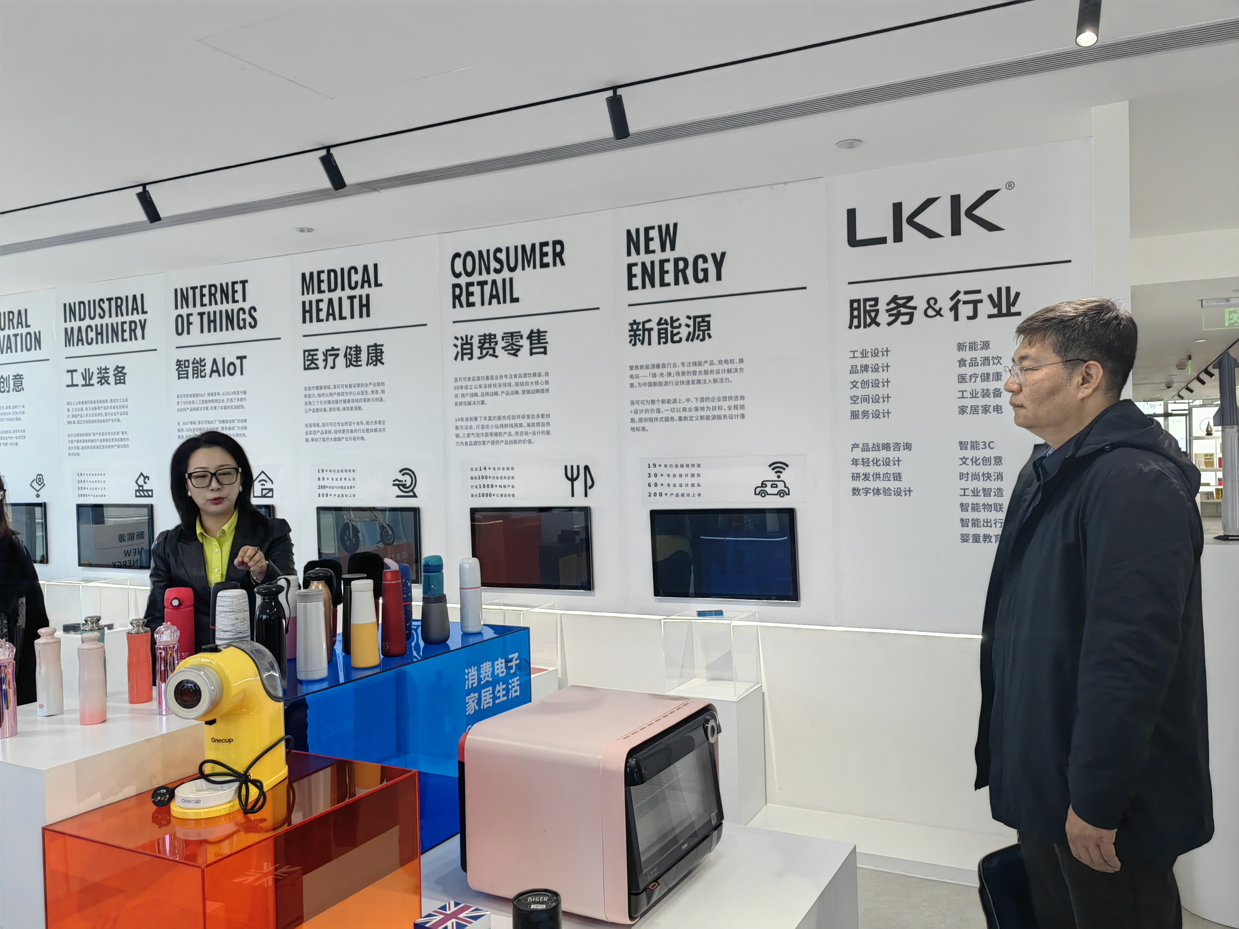 洛可可集团创始人、董事长、1996级工业设计专业贾伟,洛可可集团CPO、集团生命合伙人(洛可可战略执行委员会负责人)、1996级工业设计专业陈兵两位校友热情接待了学校一行,校友对母校一行表示热烈欢迎,详细介绍了企业的发展历程,分享了创业思考。